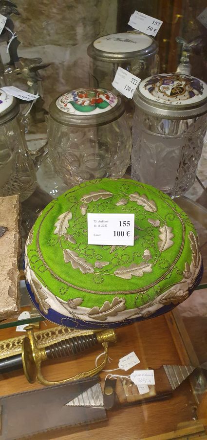 feine Stickerei mit Silberdraht: Eichenlaub, Eicheln sowie der Franko-Alemannen Zirkel,